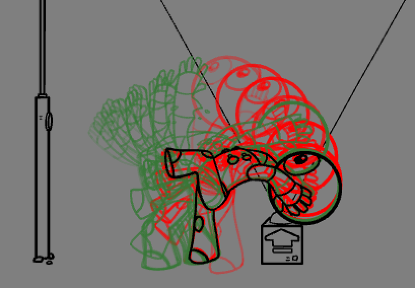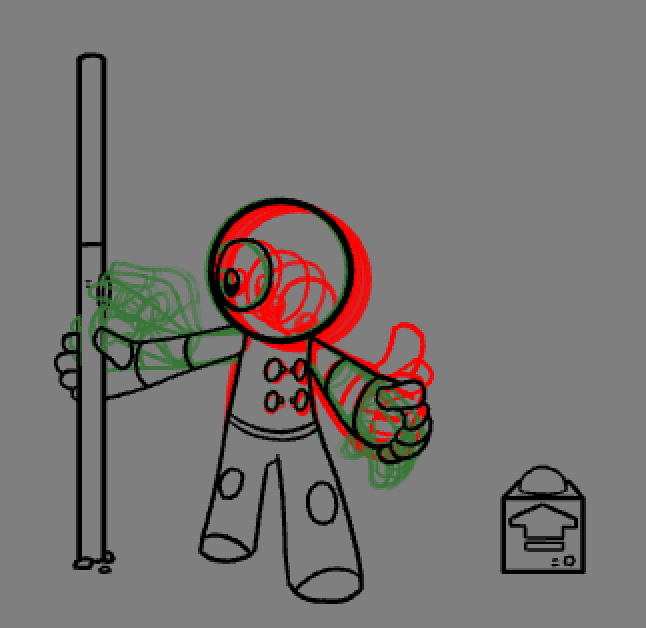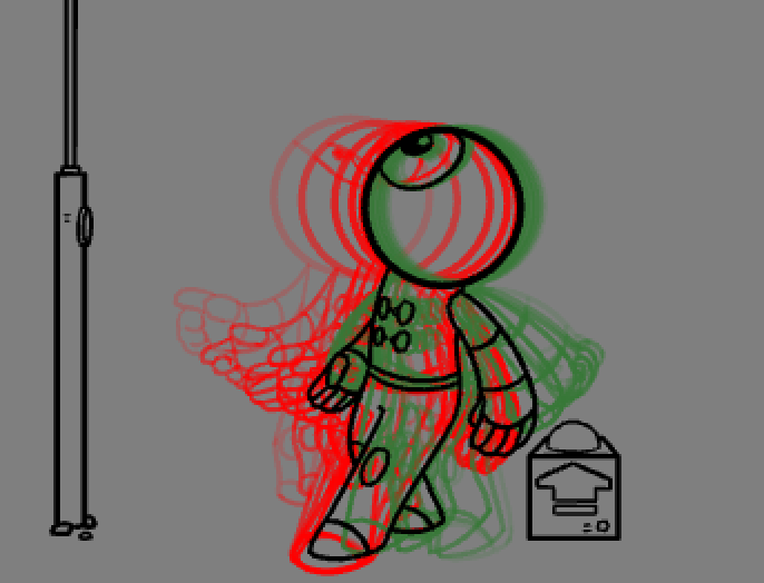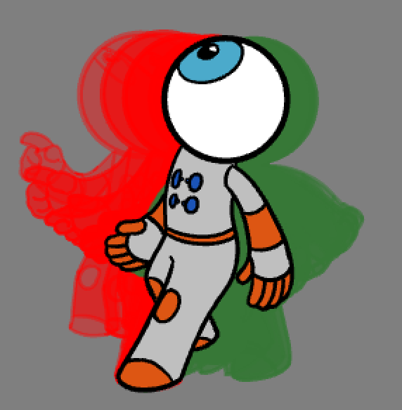 With that done, I went on to colouring, and I have to give credit to ToonBoom Harmony’s paint options: the ability to paint multiple frames at a time sped up the process tremendously, and combining that with my character’s low amount of colours (and the fact I chose to not shade anything), I completed all my animation’s colouring in a single morning.