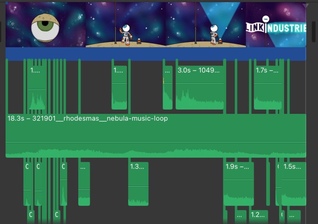 My saving grace ended up being a sci-fi track I found on the website that (with some tweaking) matched perfectly with my animation, both in timing and feel: it elevated my animation’s quality by a wide margin, and I’m glad I stumbled onto it after a long while of searching for a good background track.