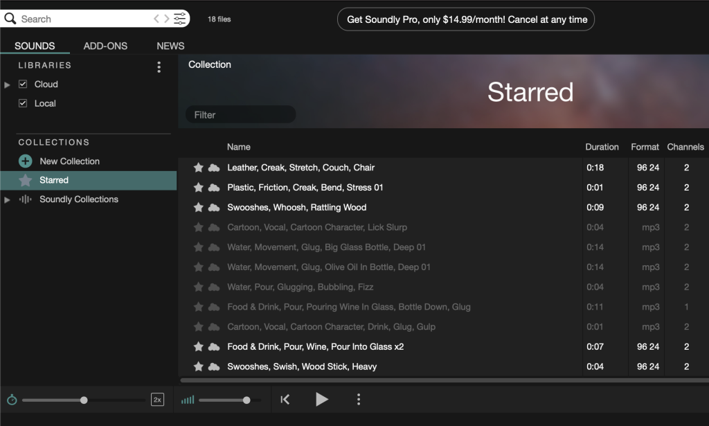 Next came the sound, which I always struggle with. I began by using freesound.org, but Cai Pritchard from the Sound Design course advised me to use Soundly instead. His advice ended up being extremely correct, as its selection ended up being much better than anything I could find on freesound, even only using the free version.
